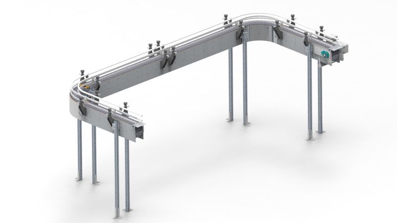 Titans TableTop conveyors have excellent flexibility for production line layouts, being suitable for curves or changes in elevation.
